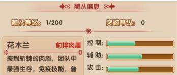 布阵时花木兰必定放在前排承担伤害,最好放在主输出的前面,更好保护主力输出。