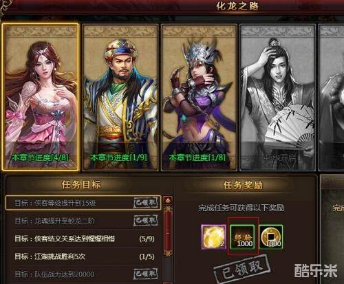 优化之路类似于成就奖励,达到一定的奖励目标就有奖励可以领取。如侠客等级提升到15级就可以获得1000经验奖励。虽然不多,但是对于新手来说还是挺重要的。