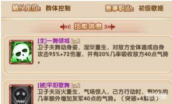 这个主动技的伤害就不用说了,面板数值很中庸。亮点就在于吸取气势,对敌方随机一人吸取气势,相当于延长敌方积攒主动技的时间,并缩短卫子夫自己的积攒时间。这种控制技能目前在游戏内是独一无二的,而且主动技几乎是每个随从的核心,吸取气势这种技能可以有效削弱敌方学士的输出能力。