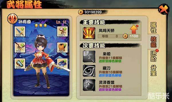 技能:(1)凤鸣天骄,对一名敌人造成法术伤害