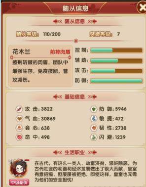 大家可以再看下做为一个肉的花木兰,会心是非常非常低的,我还有叶贵人的+360的会心权贵,没有叶贵人,花木兰只有200多的会心。固定属性会给你所有随从都加上固定的数值,其实这部分战力是很虚的,图中花木兰即使加了这360的会心从200多会心变成了638,面对2000多的韧性她仍然不会暴击。