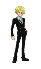 金发,有着卷曲眉毛,永远遮住半边脸的家伙,香烟不离口,最爱女人,很花心但很有风度,海贼中的绅士。小时候跟随大海贼红脚哲普学习厨艺。踢技以快准狠被海军称之为“黑足”。遵守“骑士道精神”,从不愿意伤害任何的女性,哪怕是敌人。梦想是找到传说之海All Blue而跟随路飞一同进入了伟大航路。