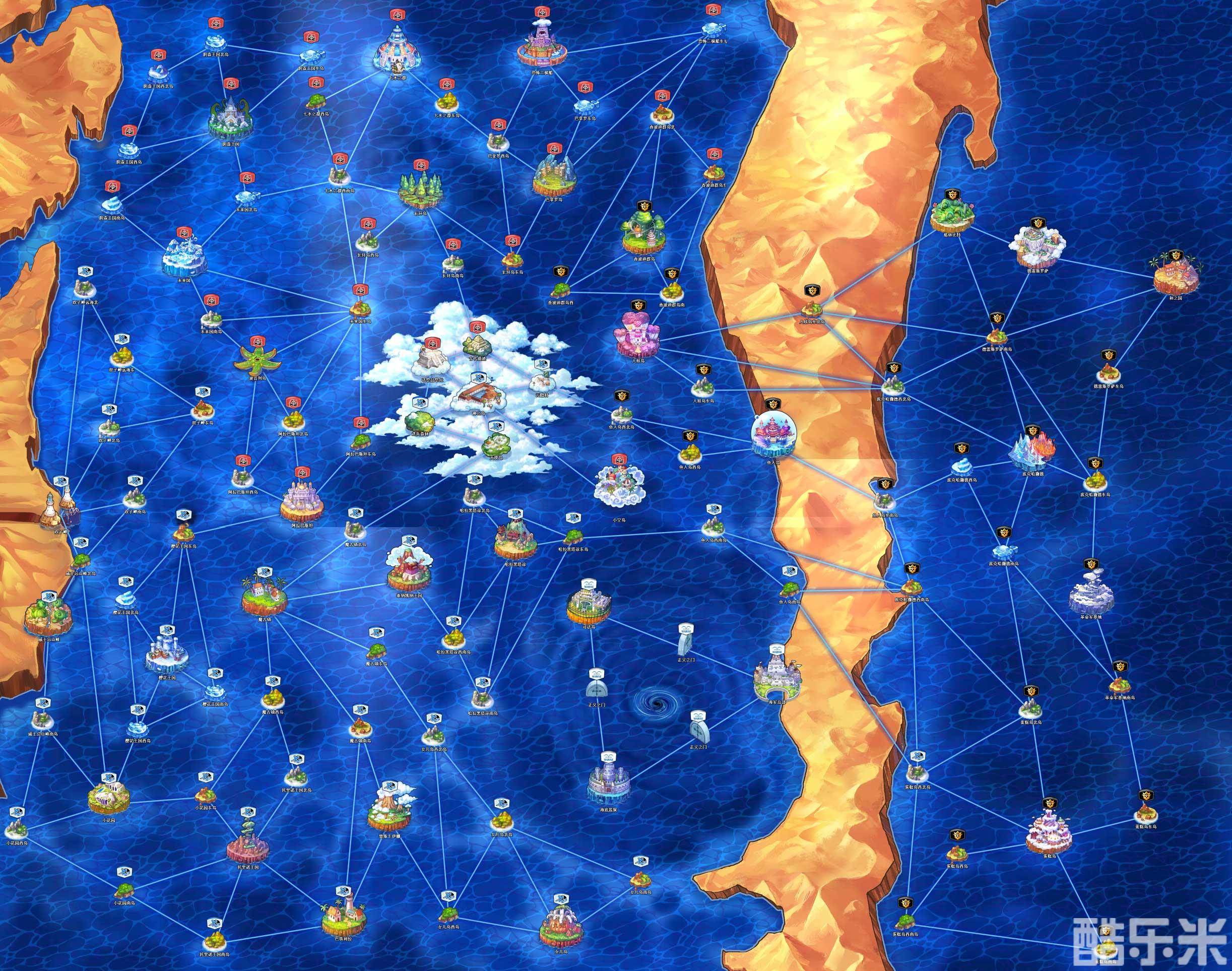 航海王online伟大航路是基于原着世界地图的一大玩法,在航海王online伟大航路中,世界众多的标志岛屿被分割成了几大势力,分别为“七武海猎人”“四皇挑战者”“超新星次世代”,还有中立“海军”的司法岛、海地监狱以及海军总部(不过暂时无法到达)。