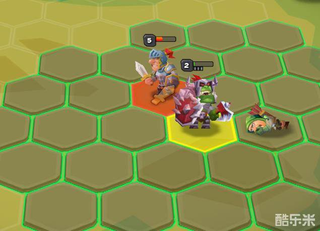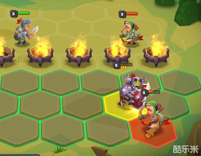 所以兽人先前进3格,士兵后退一格。让兽人先挨两箭。