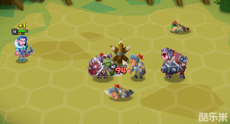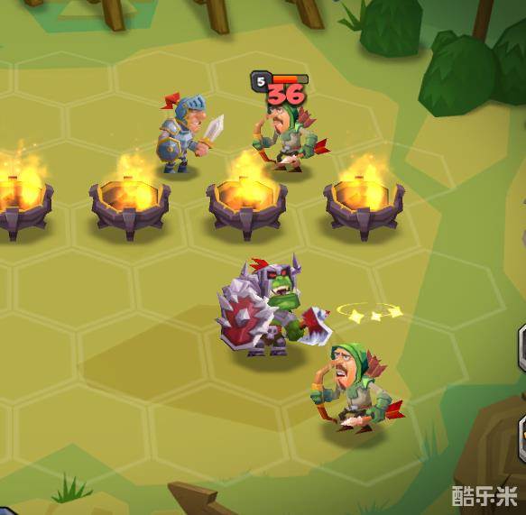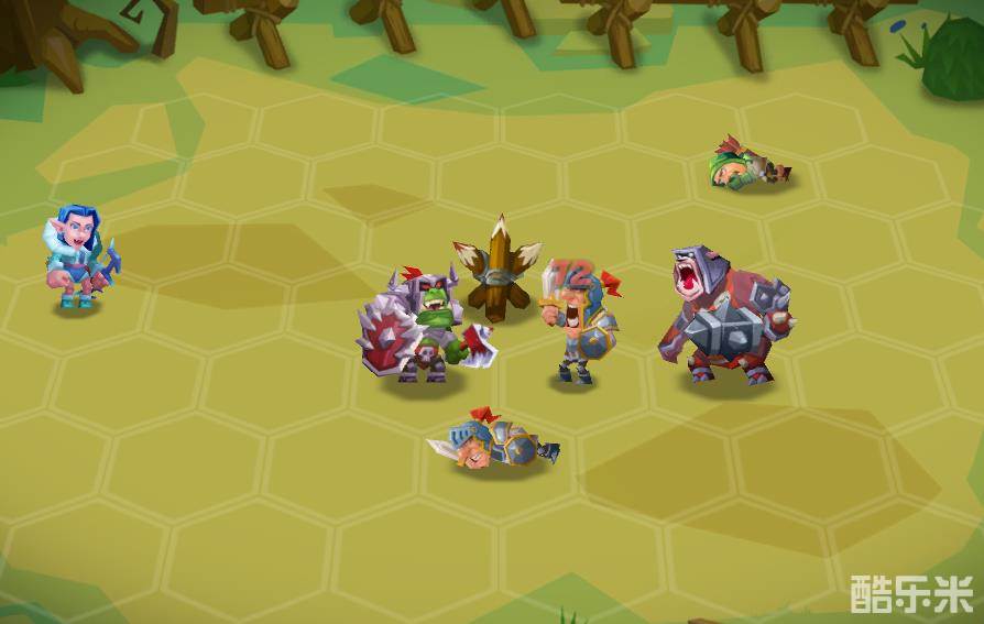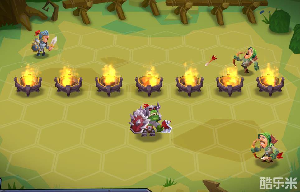 这个时候兽人又挨两箭,刚好存活,使用盾击击晕弓箭手,士兵上前近身攻击,防止弓箭手射击兽人。