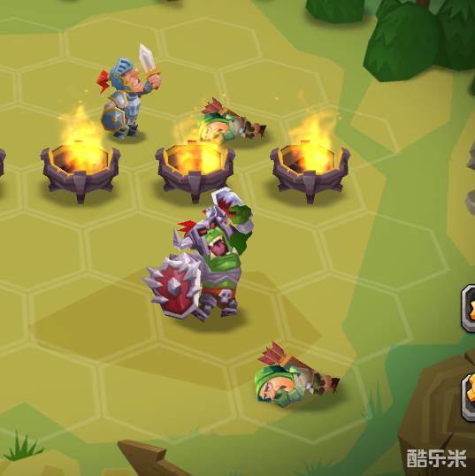 这关叫远程防御,就是兽人和士兵分别对付一个弓箭手,但是士兵血少,兽人血多,士兵一旦死亡兽人就只有挨打的分。