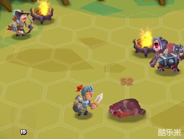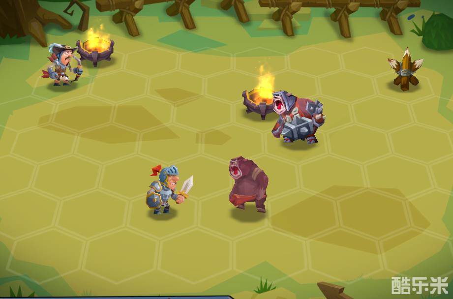 首先弓箭手射击小熊,士兵前进一格,注意不能走到下面,太远弓箭手伤害不够。