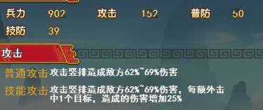技能攻击:攻击竖排造成敌方62%~69%的伤害,每额外命中一个目标造成伤害提升25%。