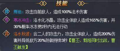 洛水秋波:攻击全体敌人造成200%伤害并降低敌方20%防御持续3秒。
