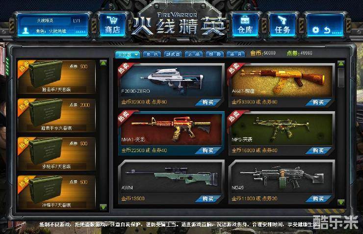 《火线精英》的游戏商城,你可以用点卷或者金币进行购买道具。商城可以满足大家不