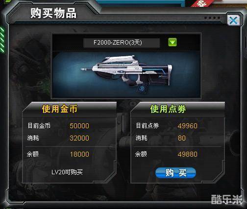 鼠标点击购买按钮,可弹出武器购买框,选择所需要的武器使用天数,即可确认购买。