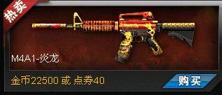 4.【M4a1-炎龙】 这把枪可以说是火线精英里性价比最高的枪了,无论威力、射速、换弹性能都很优秀。最重要的是,它的外形很酷炫,在酷炫的外形和优秀的性能上,价格还如此的便宜,只要22500金币或者40点卷,所以强力推荐!