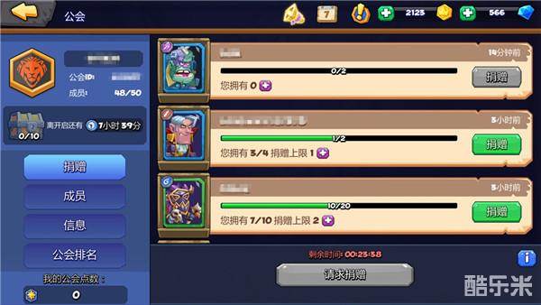 接下来给大家说说公会的捐献,可能很多人会觉得在公会里把卡捐给其他人会影响自己的培养速度,但实际上我们捐1张收1张,而且还能获得公会点数,公会点可以用于替代缺失的卡片升级任何怪物,因此总体上是不亏的,希望大家在公会里可以多多捐献。