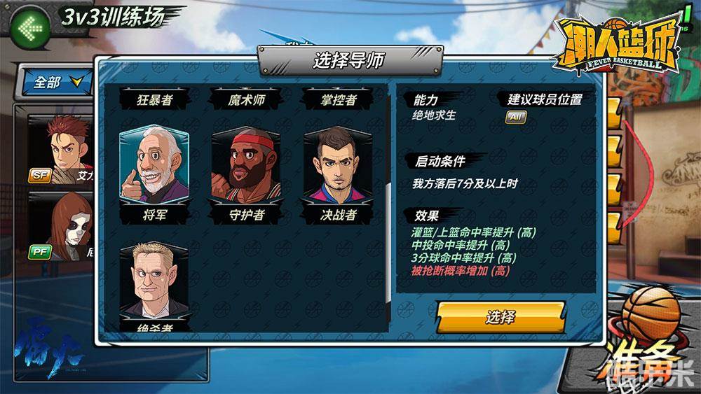 和风格多变的球员一样,《潮人篮球》的导师设置也力求打破常规,从热情开朗的美女篮球主播幸运星,到叱咤球场经验丰富的天胜者,每一位导师都有独一无二的背景故事和与之相关的能力设定,例如复仇者休斯的能力加成是在我方落后5分及以上时启动,而幸运星阿彩是在比分打平时触发。配备合适的导师能让你如虎添翼,也使得球场上3分钟的比赛更加精彩!
