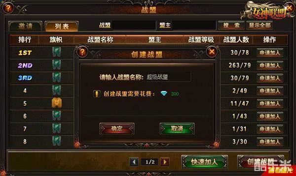 ◆玩家创建战盟将花费一定数量的钻石,且退出战盟之后重新加入新战盟将会有一定冷却时间CD。