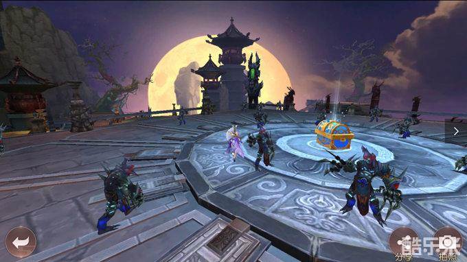 噬灵渊除了是刷怪练级圣地,还是赏景圣地。深渊里孤峰突兀、危楼高耸、枯木盘虬,一轮巨大金黄满月高悬前空,顿生身处九重天阙之感,呈现出与白天完全不一样的绝美风景。带着心仪的TA一边凌空飞行一边私语,甚至不用语言交流,只是凝神赏月也别有一番浪漫风致。