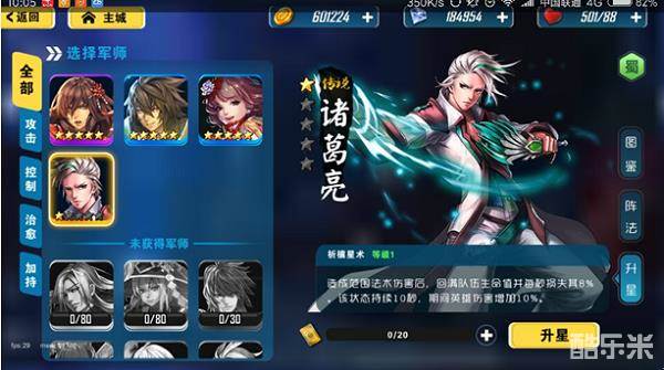 关于军师的特质,特质每一个人能得到的都是随机的,有很多不一样的阵法,小编升到五星得到的阵法是: