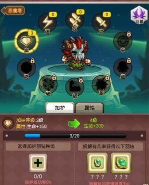 加护需消耗各类羽钻道具,魔塔为主要的掉落途径。