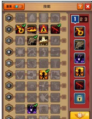 5.重置技能可使已获得的技能和专精随机一次,数量不变。如果玩家在获得新的技能后觉得不是自己想要的,点击左上方的重置,花费20钻石,可随机重置技能和专精。