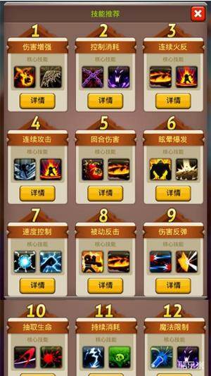 3.技能分为10个系,每个系的技能各具特色,可根据需要综合考虑外套等因素搭配。