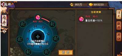 玩家消耗九转洗心丹可以进行培养。培养可以让玩家提升生命、物攻、法攻、物防、法防五项基础属性。培养有三种方式,分为道具培养、金币培养和元宝培养。三种培养方式效果相同,玩家可以根据需要自行选择。玩家培养有属性上限,每次突破境界可以大幅提升上限。