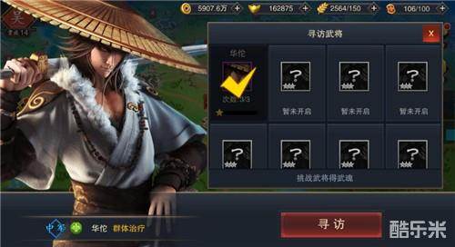 华佗作为三国时期最著名的回春圣手,在游戏中的定位也是一位奶量十足的奶爸。虽然初始二星级,但是资质并不平凡,位列名将之中,是一位值得培养的平民武将。华佗的必杀技即为恢复我方全体武将的生命值。对于前锋和中军的高输出武将来说,攻击力极高,但是兵力就会不足,容易损失,华佗可以为队友补充兵力。华佗的获取方式也是非常简单,可以通过名仕寻访来获得。