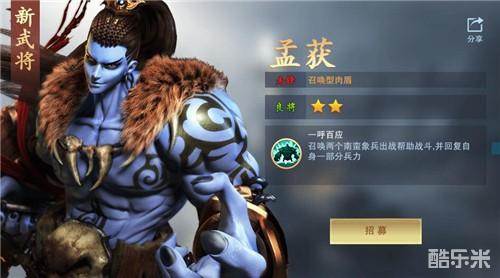孟获作为南蛮首领,虽然不是三国之主,但也是统领一方的豪强。在游戏中,孟获的技能是召唤术,在怒气攒满之后,就可以召唤出一队象兵进行攻击,能够为本方部队源源不断的补充兵力。正式因为这一特性,孟获可以充当团队中的多面手,无论是输出还是前排,孟获都能做的很好。