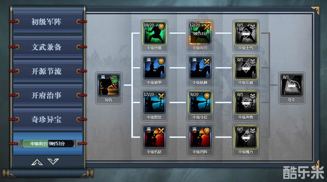 这是个提升战力和战斗力的重要场所。不仅可以直接提升兵种的科技,还可以增减直接伤害等等。