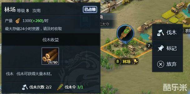 玩家可以占领城池周边的港口、村落、农田、矿场,林场、牧场,每天收获各种资源。