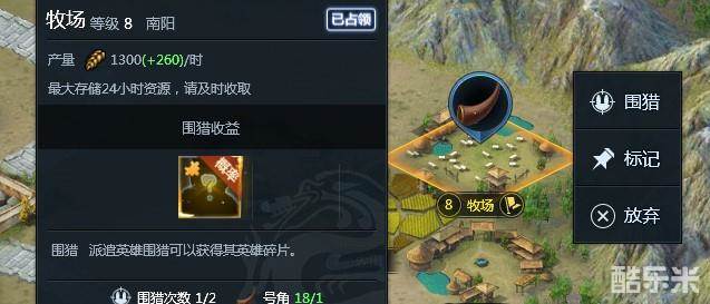 而产业里最最重要的,是牧场!玩家可以用号角,每天在产业上让英雄参加围猎,获得英雄碎片。如果游戏推出新英雄,除了活动,这里是唯一的碎片来源。