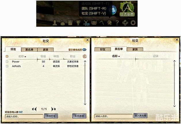 在游戏时,点击键盘‘SHIFT+V’键可召唤出‘社交窗口’,输入好友昵称即可远距离加为好友进行组队。如果玩家遭到恶意骚扰,也可以点击社交窗口‘黑名单’,输入对方昵称就可屏蔽。