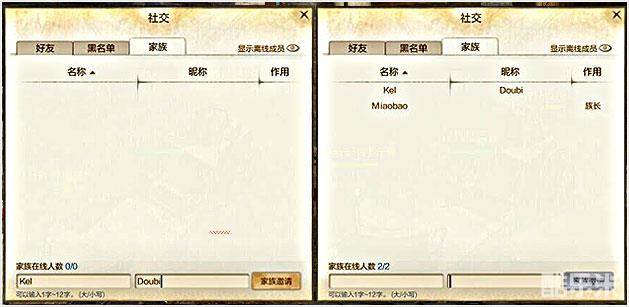 在游戏时,点击键盘‘SHIFT+V’键可召唤出‘社交窗口’,点击‘家族’即可创建。玩家角色等级到达5级,打开窗口输入需要邀请的小伙伴游戏昵称,点击家族邀请就完成创建了。发起邀请的玩家为家族族长,‘家族’人数上限为8名。在‘家族’中的成员可共用小范围物质和资源,例如:家族成员房屋、田地等。