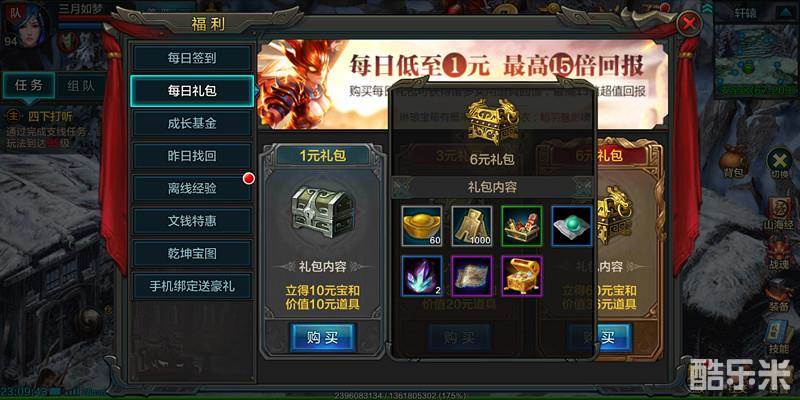 不过,想要+15,一点都不花钱那是不太可能的,当然钱得花在刀刃上。每日礼包中的3元礼包和6元礼包非常合算,除了里面的新月之石、墨银矿石、精炼宝箱外,充的元宝还能购买精炼宝箱。10天的每日礼包就能获得10个新月之石、200个墨银矿石、以及21个精炼宝箱。