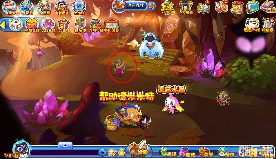 要想获得怪侠罗宾浣,我们来到遗忘森林,可以看到那里的野生宠物怪侠罗宾浣。