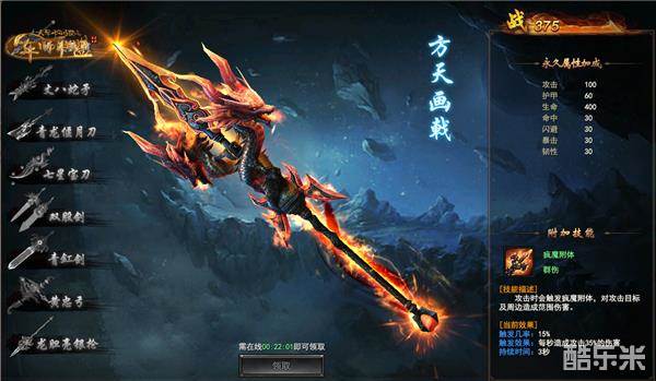 方天画戟:在线1小时可领取