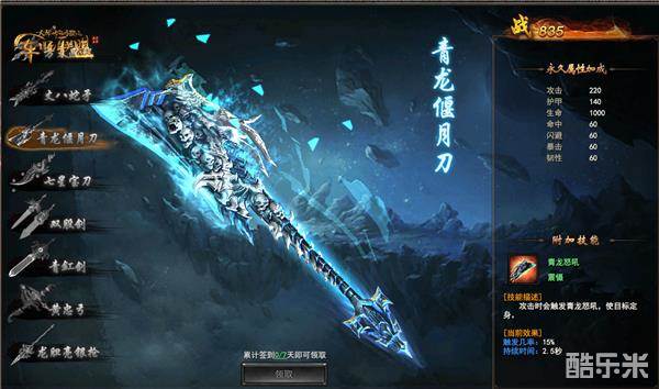 青龙偃月刀:累计签到七天可领取