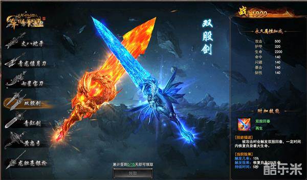 双股剑:累计签到15天可领取