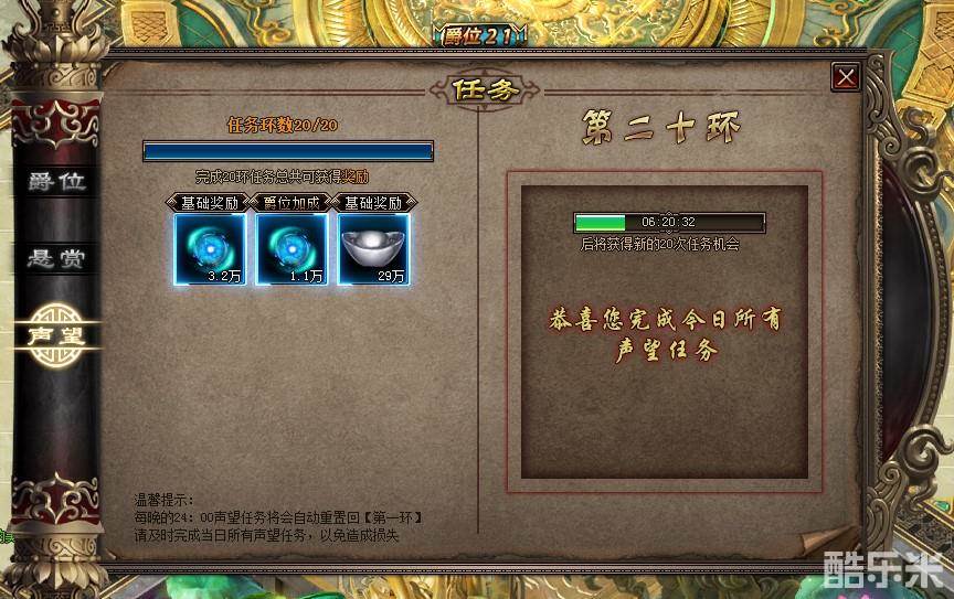 每天可以完成一定的循环杀怪任务,可以获得大量的经验奖励。