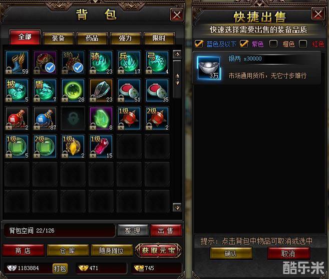 若不需要某些道具可以将道具出售掉,可以获得大量银两。