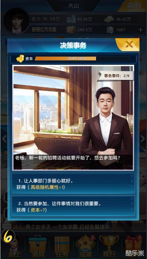 c.通过每个员工对应美女,提升与美女的亲密度,约会美女获得经验,升级美女技能来提升员工