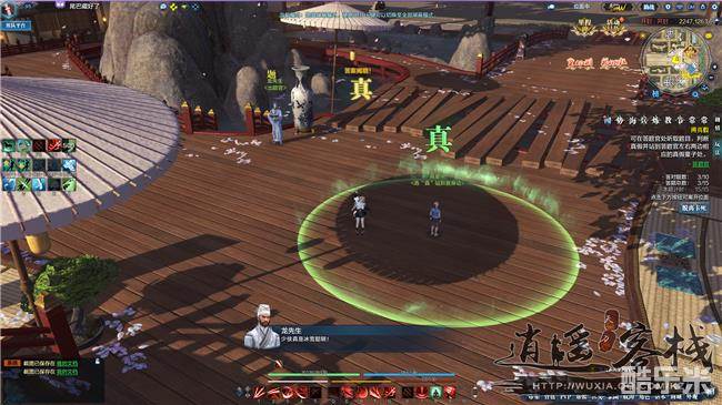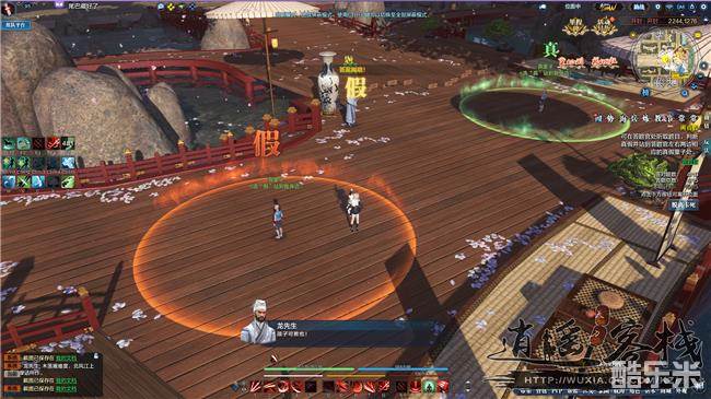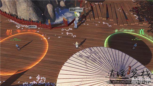 龙先生每隔一段时间会提出问题,该问题将显示在技能栏上方。玩家可根据题面真假前往左右两侧的真假童子处站定做出选择。
