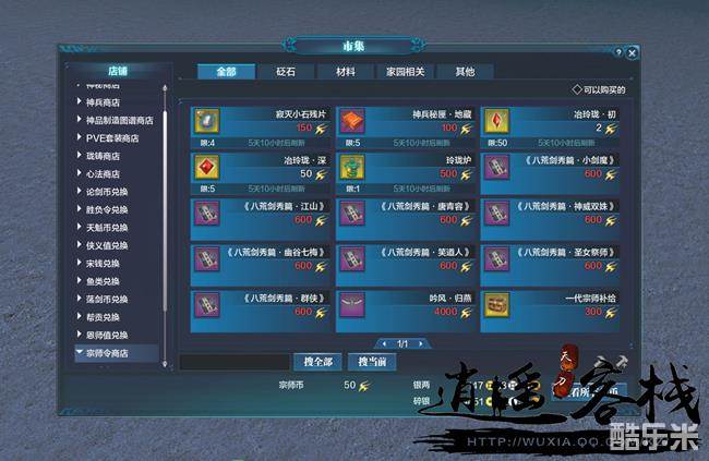 4、宗师令可以于宗师令商店中兑换各种物品;