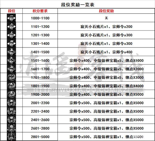 根据当前的积分和战绩会获得宗师分,宗师分会决定宗师段位,不同的段位可以获得不同的头顶图案和相关奖励,具体如下表: