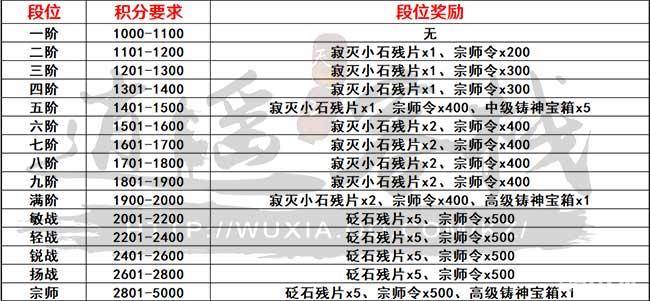 而奖励方面,在满阶之前每段都会获得一定数量的宗师令和寂灭小石残片,奖励的宗师令不受每周额度上限的影响。在敏战之后的段位居然获得的是砭石残片,看上去有点鸡肋。不过对于普通玩家来说也许是一件好事情,毕竟大家很难打到如此高的段位。升段奖励在得到新段位的时候会通过邮件发放,并且在赛季末结算的时候还会发放一次,所以大家一定要尽量提升段位。
