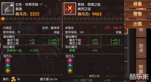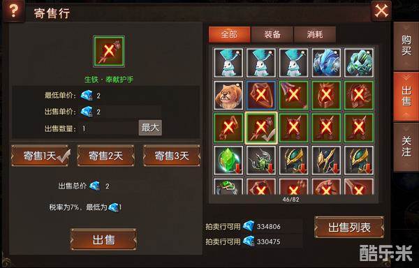 在游戏中,每个职业拥有属于自己的专属装备,不属于该职业的装备在头像框上会显示红色的“X”,此装备玩家不能穿上。对于不属于该职业的装备,玩家可以选择寄售或者直接出售。对于寄售的装备,玩家将自由选择最低单价、出售单价和寄售时间,并在出售列表中查看最新的寄售情况,可获得绑定钻石。对于出售的装备,玩家将直接获得金币。
