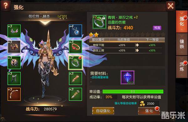 每个装备强化成功率不同,能否强化成功也具有随机属性。装备强化失败会增加幸运值,强化成功会增加五角星个数和战力属性。