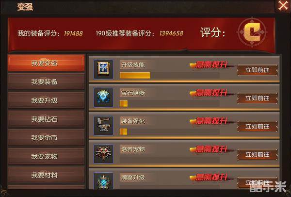 装备是《战火纪元》游戏中职业战力提升的关键。强化装备可获得相应的强化加成属性,强化的等级越高,属性就会越多。强化需消耗对应材料和金币,自动强化可依玩家当前拥有可用材料一键强化到最大等级。强化装备会提升幸运值,幸运值满级时,装备星级增加,装备属性进阶。