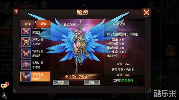 翅膀材料可以帮助玩家升级翅膀,提升战力属性。翅膀升级有可能会失败,但是失败后会获得祝福值,祝福值达到一定程度后,下次升级就不必担心了一定会成功的。