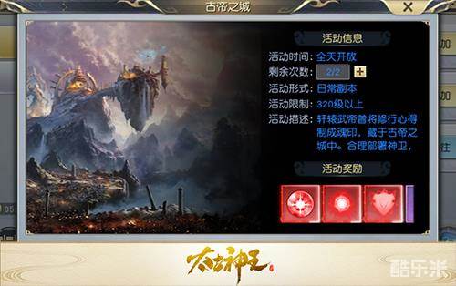“古帝之城”副本,在角色等级达到320级后可开启,进入并通过考验后可获得珍贵的武魂、天魂珠、凝魂珠等丰厚奖励。进入副本后,玩家可合理布置10个灵塔助战,依靠灵塔对魔怪造成伤害,挑战更有效率。挑战状态,城中的各路魔怪将从传送门现身,击败魔怪即可获得奖励。