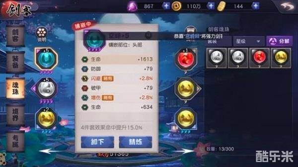 还有的魂珠属性主加闪避、命中属性,这一类魂珠便可以给绯雨闲丸、橘右京等拥有快速连击的剑客上,根据剑客自身的定位和特点,合理搭配魂珠便往往令剑客更加强大!